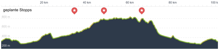 Die Tour erstreckt sich auf eine Distanz von 101 km, dabei sind 1300 Höhenmeter zu überwinden.