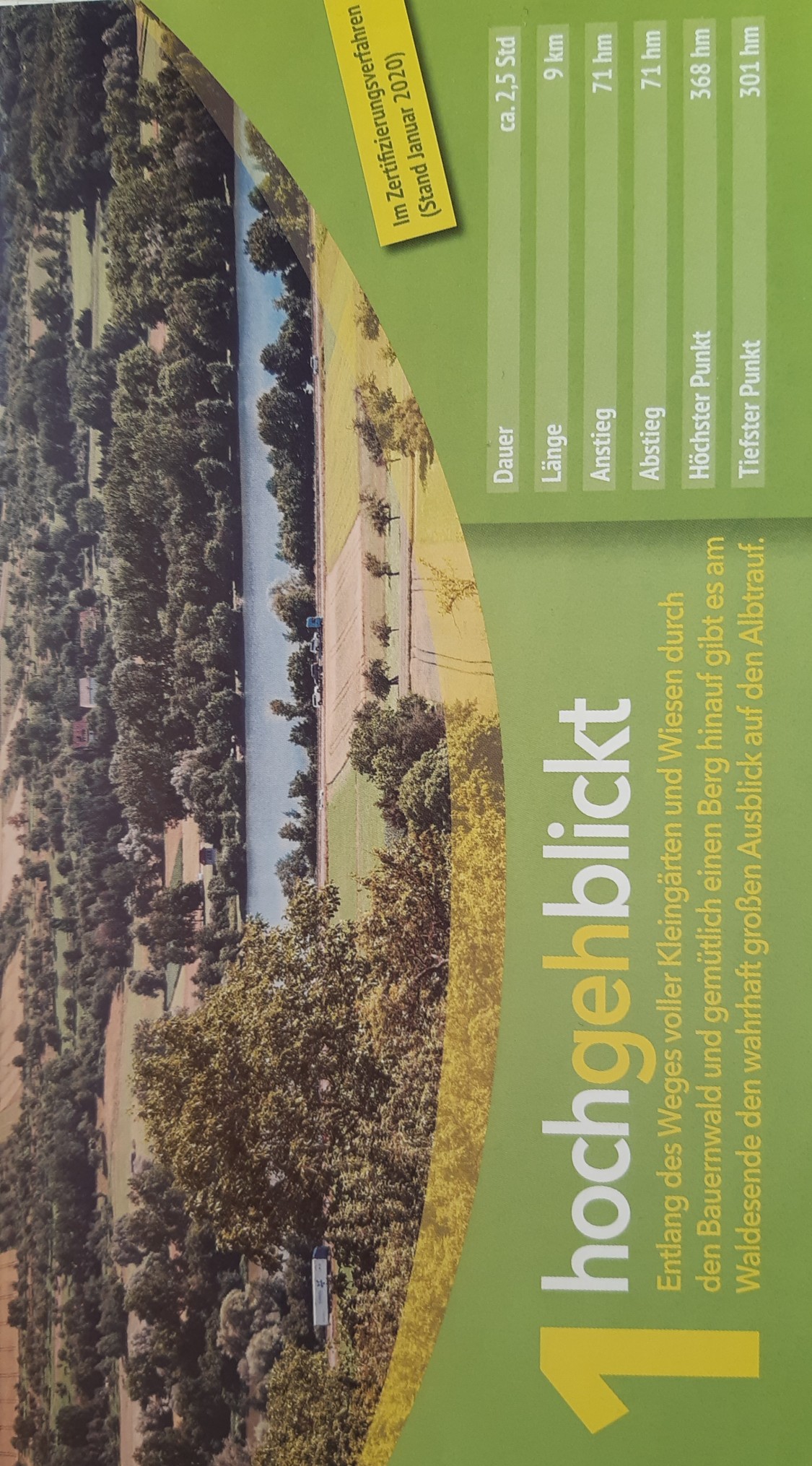 Liebe Wanderfreunde, ja warum in die Ferne schweifen, wenn das schöne liegt so nah. Unter diesem Motto treffen wir uns zu unserer Wanderung „hochgeblickt“, dem Premiumwanderweg Nr.1 des Biosphärengebiets Schwäbische Alb. Treffpunkt ist Mittwoch 16.03.22 um 13.15 Uhr am Schloßplatz. Wir fahren um 13.25 Uhr mit dem 120er nach Wolfschlugen und weiter mit dem X4 nach Nürtingen. Dort am Hallenbad/Galgenberg beginnt unsere ca. 9 km lange Wanderung mit nur 80 Hm.