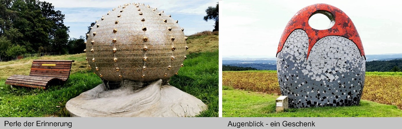 Nur das letzte Stück geht etwas steiler in Serpentinen rauf bis Lichtenwald, wo wir mehrere Kunstwerke betrachten können.