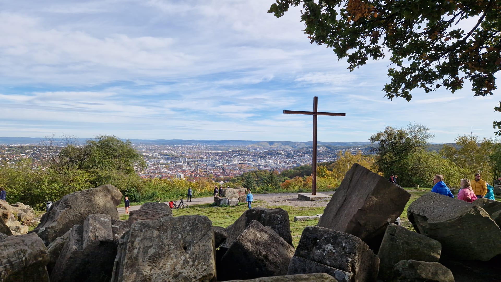 bergab zum ersten schönen Ausblick auf Stuttgart-Heslach und die